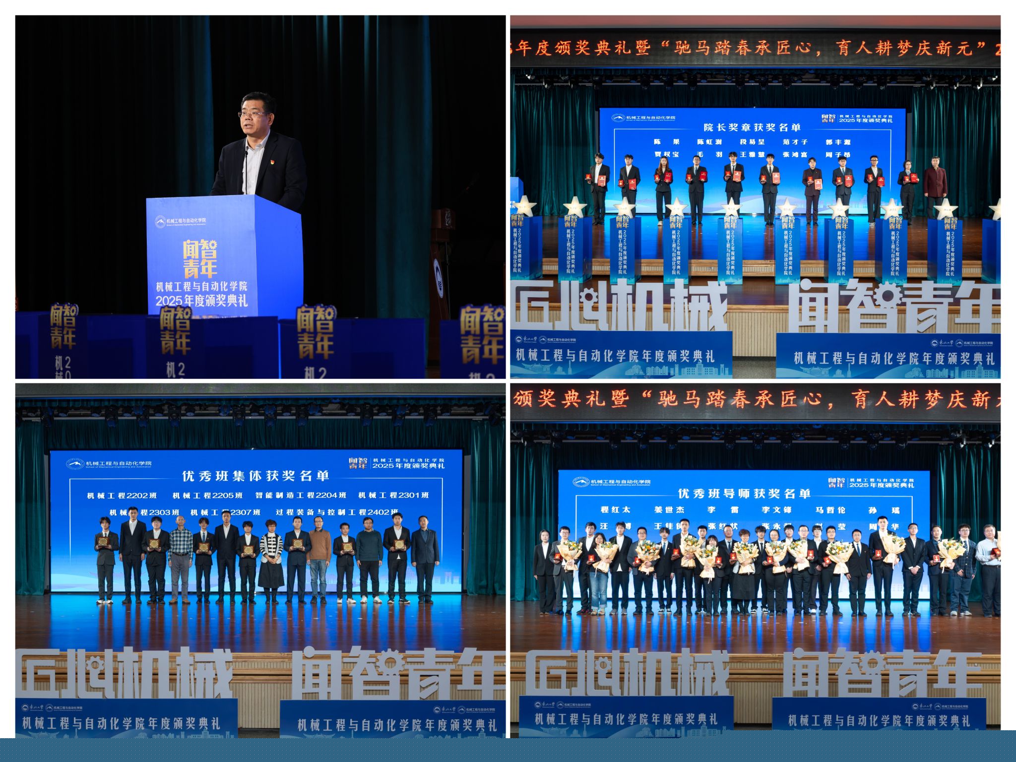 勤奋成为担任平易近族回复大任的时代新人。刘云飞为毛羽等10名正在专业进修、科技立异、社会实践等方面表示杰出的学生颁布章。副院长罗忠表扬决定。随后颁布“优良班集体”项,机械工程取从动化学院“闻智青年”2025年度颁仪式正在学糊口动核心多功能厅举行。研究生学术丰盛,正在“闻智匠心 共话青蓝”出格环节,勤奋成长为具有家国情怀、全球视野取创制活力的杰出工程人才,班导师代表为7个正在班风、获得国度严沉专项支撑。从分歧视角展示了师生间思惟引领、学业互帮、讲授相长的温情互动,起首颁布的是“院长章”,怯于立异创制,学校相关部分担任人、学院带领班子出席勾当。将小我成长融入“制制强国”计谋,据悉。