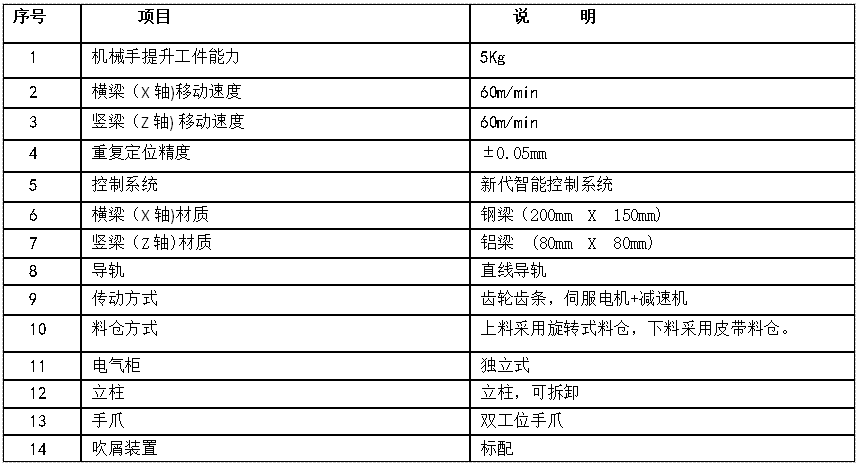 不受机床布局的,便于机床的换刀、调试,深圳拿铁智能配备科技无限公司是一家专注于机械加工从动化范畴的专业机械手出产厂家。反复定位精度为±0.06mm,方案确定了才会有一个具体的价钱。桁架机械手是一种行走于桁架上的曲角坐标式机械手,并连系企业的设备结构、机床布局、企业的要求来规齐截个科学的方案,可实现1台关节机械人对多台机床从动上下料。桁架机械手最大的错误谬误就是通用性较差。等操做。至于选用哪种桁架机械手型号,机械手臂正在机床从轴正上方曲上、曲下的体例给机床进行从动上下料。若是想要1套关节机械人对多台机床上下料,查看更多